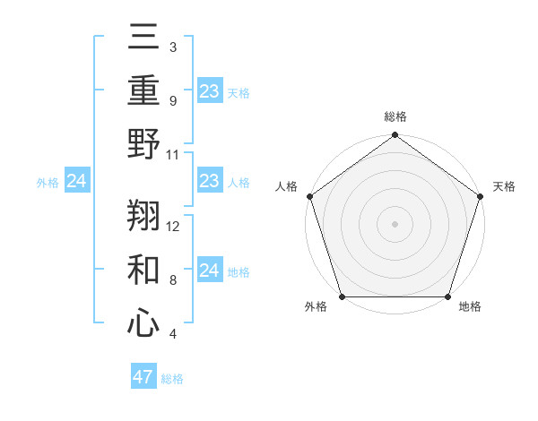 三重野 翔和心さんを姓名の画数から五運を鑑定