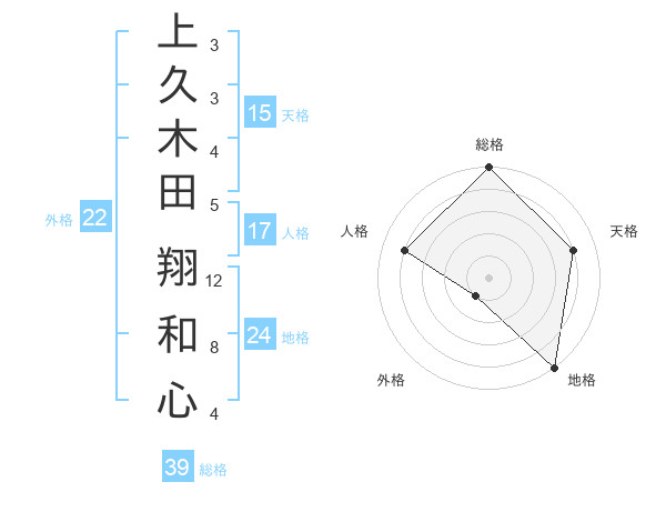 上久木田 翔和心さんを姓名の画数から五運を鑑定