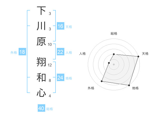 下川原 翔和心さんを姓名の画数から五運を鑑定