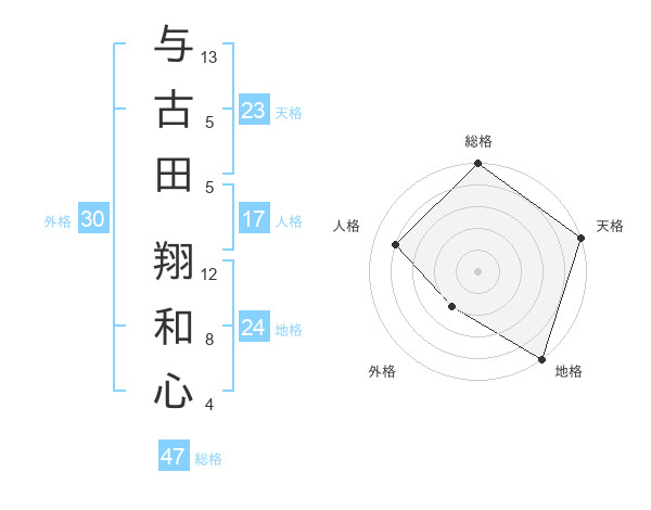与古田 翔和心さんを姓名の画数から五運を鑑定