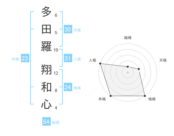 多田羅 翔和心さんを姓名の画数から五運を鑑定
