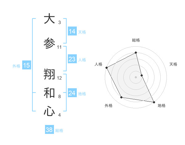 大参 翔和心さんの総格は38画の4点!