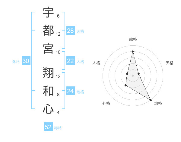 宇都宮 翔和心さんの総格は52画の4点