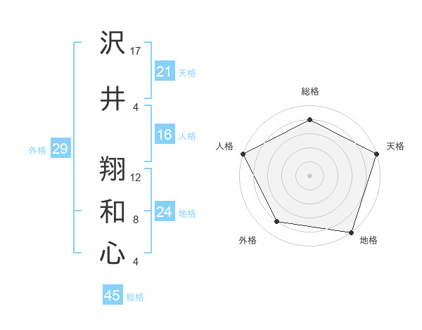 沢井 翔和心さんを姓名の画数から五運を鑑定