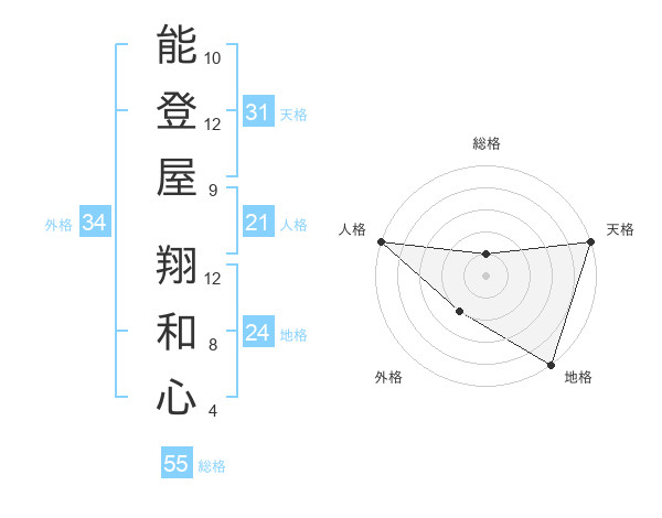 能登屋 翔和心さんを姓名の画数から五運を鑑定
