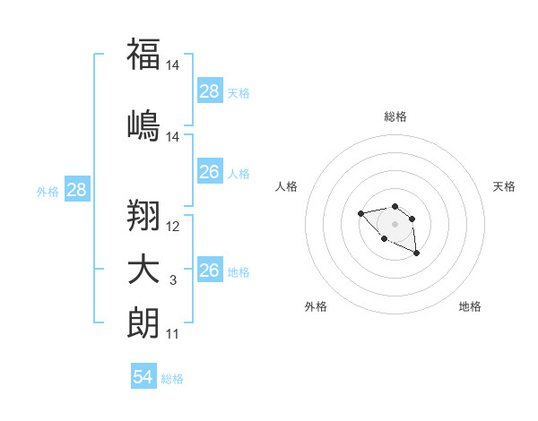 福嶋 翔大朗さんを姓名の画数から五運を鑑定