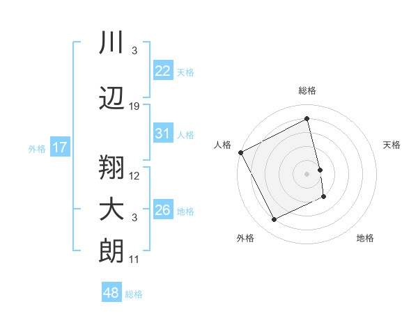 川辺 翔大朗さんを姓名の画数から五運を鑑定