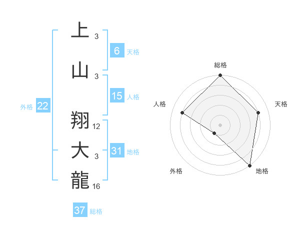 上山 翔大龍さんを姓名の画数から五運を鑑定