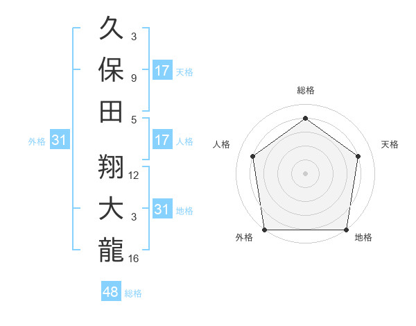 久保田 翔大龍さんを姓名の画数から五運を鑑定
