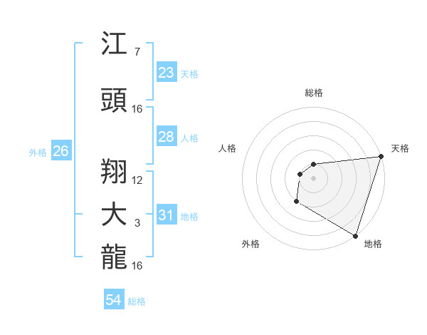 江頭 翔大龍さんを姓名の画数から五運を鑑定