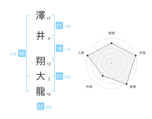 澤井 翔大龍さんを姓名の画数から五運を鑑定