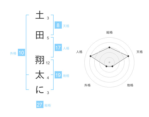 土田 翔太にさんを姓名の画数から五運を鑑定