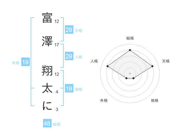 富澤 翔太にさんの天格は29画の4点!