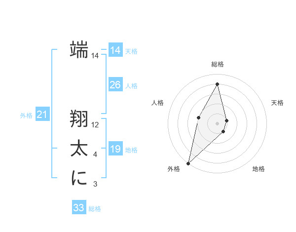 端 翔太にさんの外格は21画の5点!
