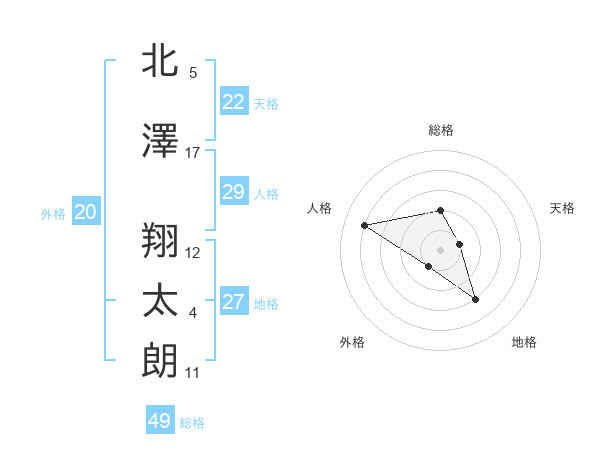 北澤 翔太朗さんの総格は49画の2点!