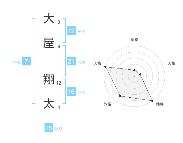 大屋 翔太さんを姓名の画数から五運を鑑定