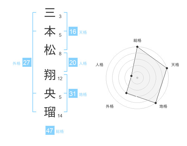 三本松 翔央瑠さんの総格は47画の5点!