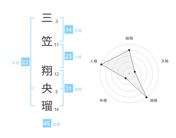 三笠 翔央瑠さんを姓名の画数から五運を鑑定