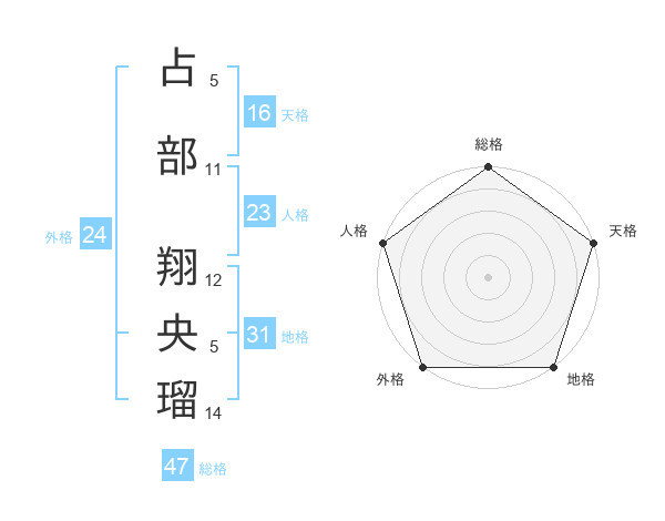 占部 翔央瑠さんを姓名の画数から五運を鑑定