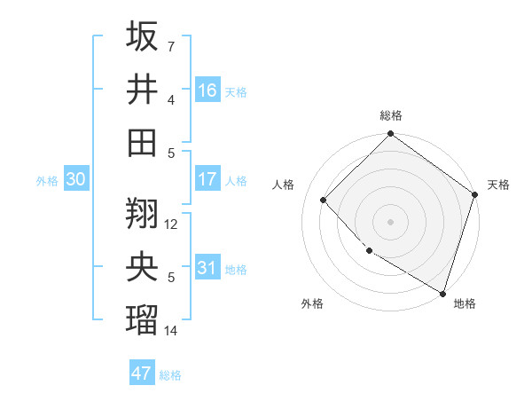 坂井田 翔央瑠さんの総格は47画の5点