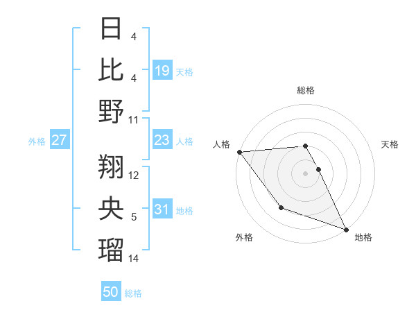 日比野 翔央瑠さんを姓名の画数から五運を鑑定