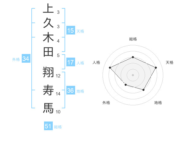 上久木田 翔寿馬さんの総格は51画の3点