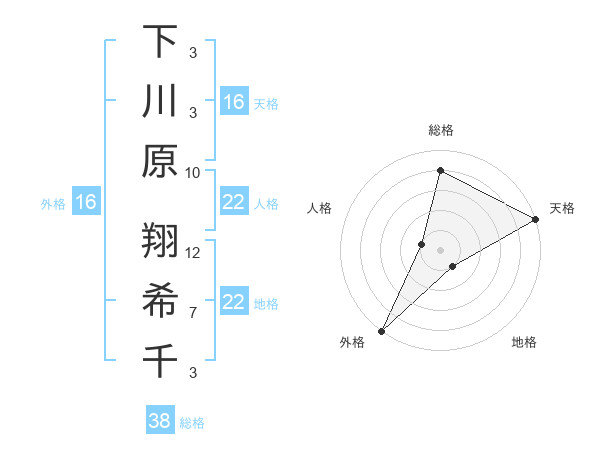 下川原 翔希千さんを姓名の画数から五運を鑑定