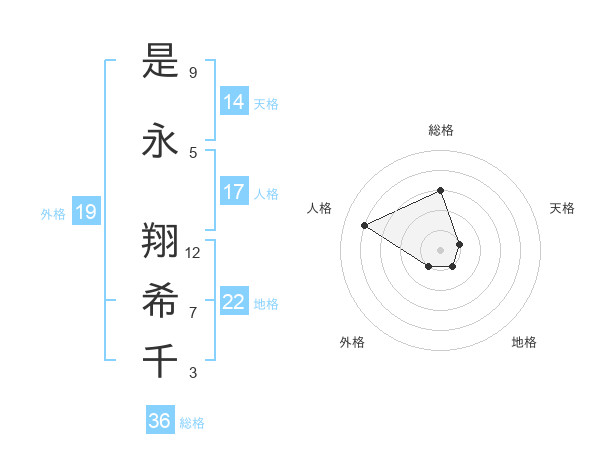 是永 翔希千さんを姓名の画数から五運を鑑定