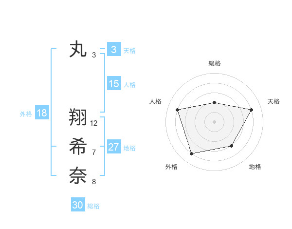 丸 翔希奈さんの総格は30画の2点!