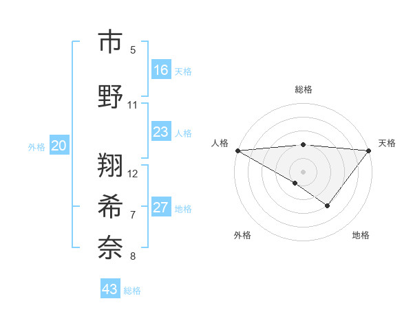 市野 翔希奈さんの天格は16画の5点!