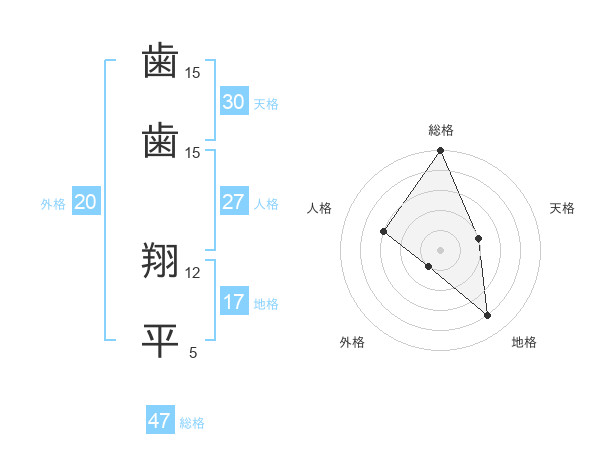 歯歯 翔平さんの総格は47画の5点!