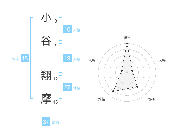 小谷 翔摩さんの総格は37画の5点!
