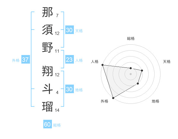 那須野 翔斗瑠さんを姓名の画数から五運を鑑定