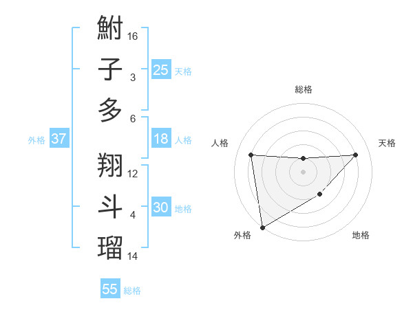 鮒子多 翔斗瑠さんの外格は37画の5点!