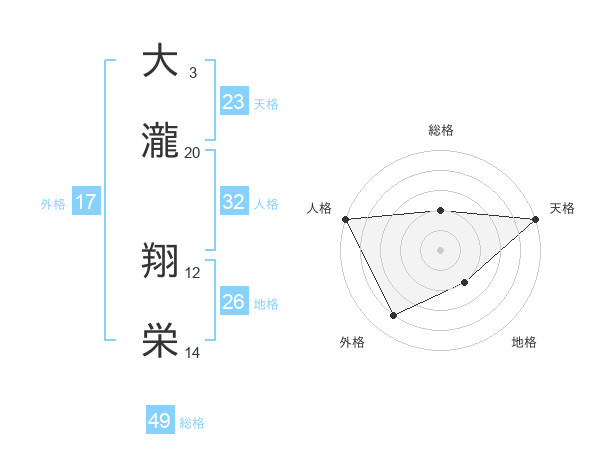 大瀧 翔栄さんを姓名の画数から五運を鑑定