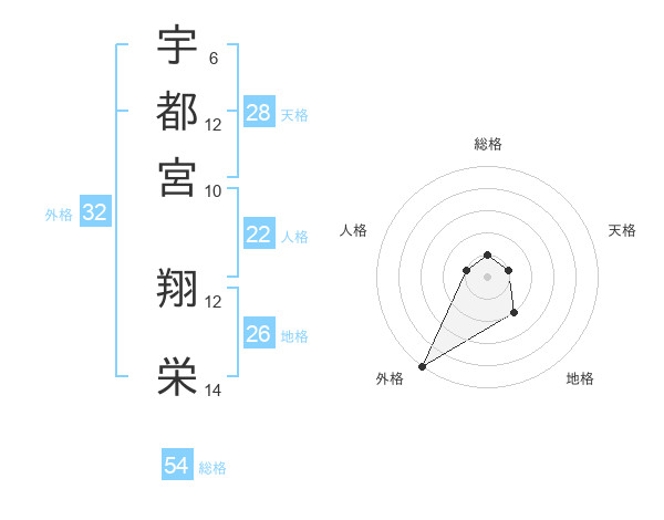 宇都宮 翔栄さんの外格は32画の5点!