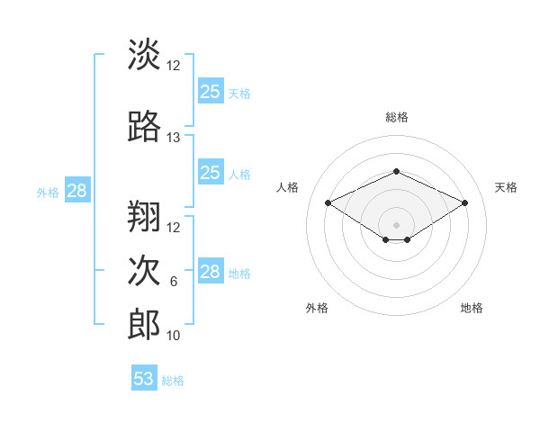 淡路 翔次郎さんを姓名の画数から五運を鑑定