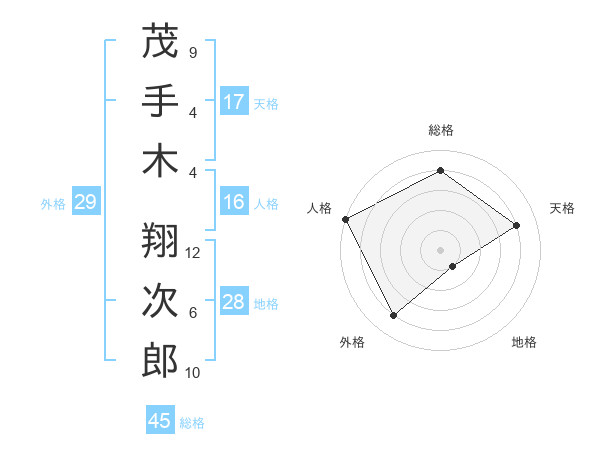 茂手木 翔次郎さんを姓名の画数から五運を鑑定