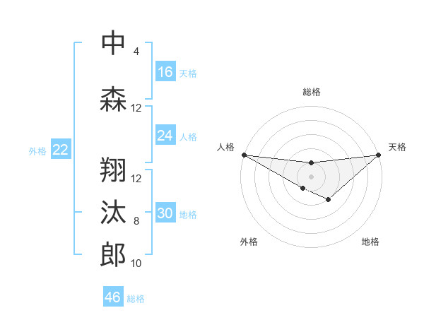 中森 翔汰郎さんを姓名の画数から五運を鑑定