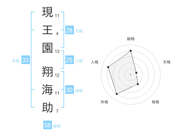現王園 翔海助さんの総格は58画の4点!