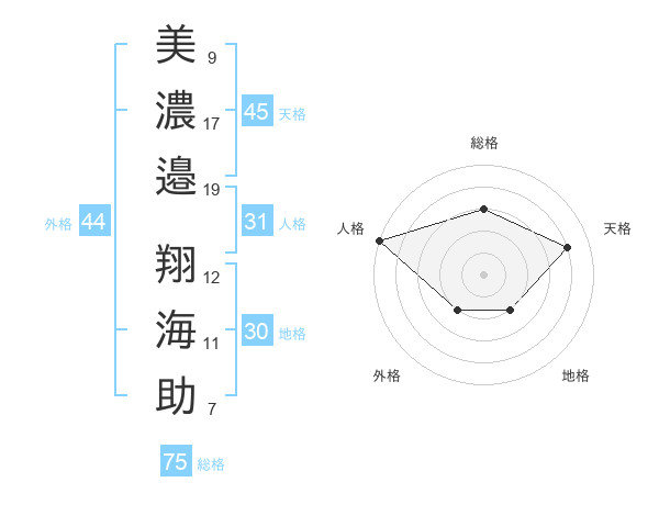 美濃邉 翔海助さんの総格は75画の3点!