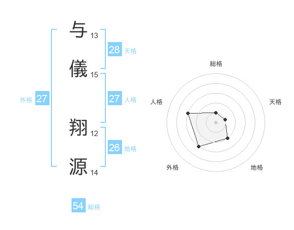 与儀 翔源さんを姓名の画数から五運を鑑定