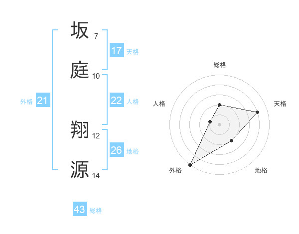 坂庭 翔源さんの外格は21画の5点!