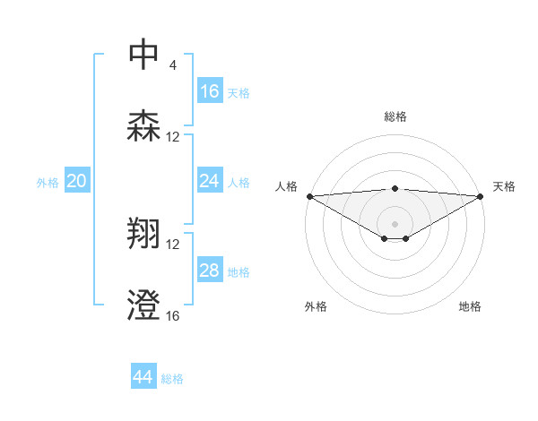 中森 翔澄さんの総格は44画の2点!