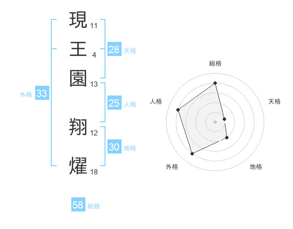 現王園 翔燿さんを姓名の画数から五運を鑑定
