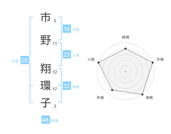 市野 翔環子さんの天格は16画の5点!