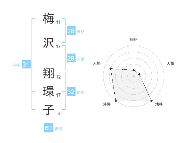 梅沢 翔環子さんの総格は60画の1点!