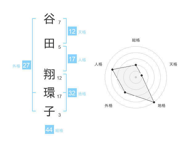 谷田 翔環子さんを姓名の画数から五運を鑑定