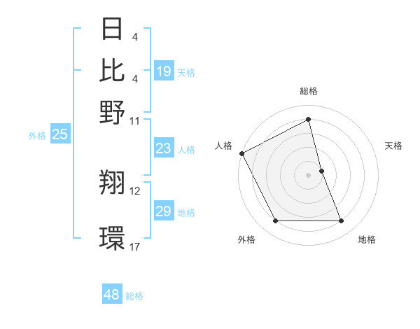 日比野 翔環さんを姓名の画数から五運を鑑定