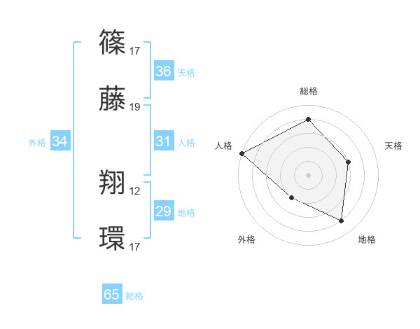 篠藤 翔環さんを姓名の画数から五運を鑑定